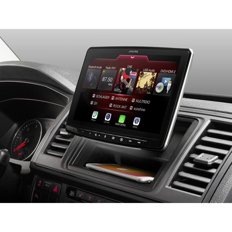 Das "Alpine Halo9 Navi" INE-F904T6 für den Volkswagen T5 (7H/E/J) Modelljahr 09/2009 – 06/2015 und T6 (7H/E/J) ab Modelljahr 07/2015 mit iGo Nextgen Navigation und TomTom Kartenmaterial für 48 Länder.