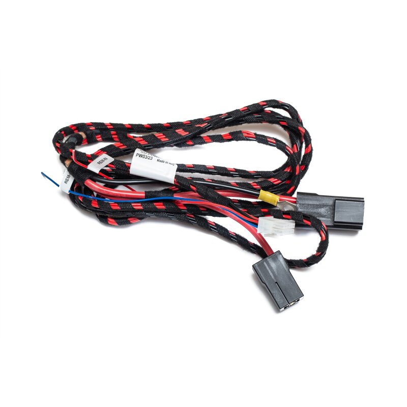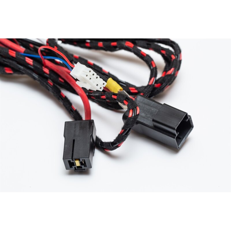Der Kabelsatz umfasst ein qualitativ hochwertiges Powerkabel mit integriertem Sicherungshalter, das bereits für die typische Einbausituation im Fahrzeug ausgelegt ist. Die Länge von 2,50 Metern ist vorkonfektioniert und ermöglicht eine übersichtliche und installationsfreundliche Verlegung, ohne dass Änderungen an der originären Verkabelung des Fahrzeugs nötig sind.